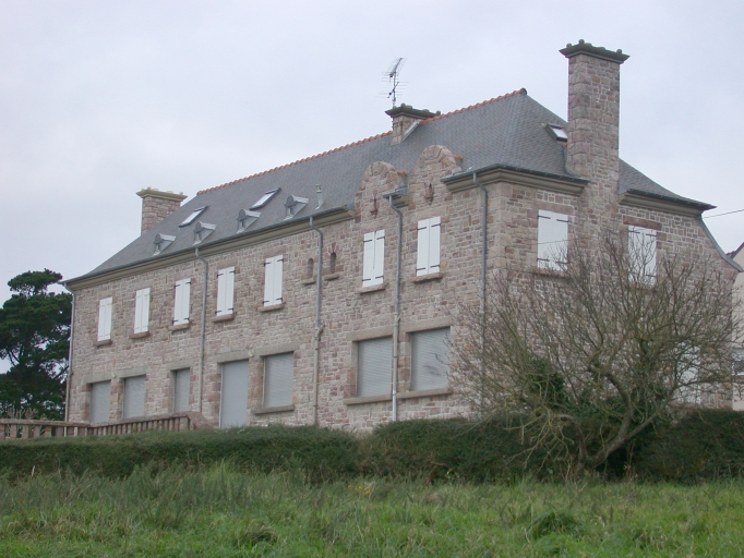 Cette maison construite en grès domine le paysage de sa masse imposante. Caractérisée par une volumétrie importante, elle est composée de deux corps de bâtiment d'importance inégale disposés en équerre : elle comprend un corps de bâtiment principal de plan rectangulaire allongé constitué de deux parties séparées par un mur de refend montant de fond et portant souche de cheminée et un corps de bâtiment secondaire en retour d'équerre à l'arrière. L'entrée est abritée sous un porche situé dans l'angle. La façade postérieure orientée vers la mer est ouverte de grandes baies au rez-de-chaussée. Eléments de décor : corniche, frontons cintrés, souches de cheminée à boules.
