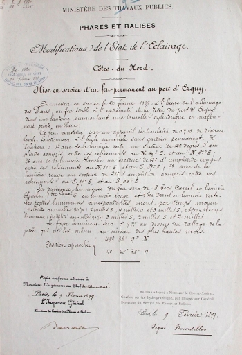 AD Côtes-d'Armor. Série S ; sous-série Série S Art. 582. Plan de situation pour l'emplacement en projet du phare d'Erquy à la pointe des Châtelets, 1883-1886.
