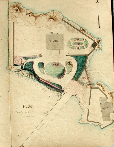 AD Côtes d'Armor. Série S ; sous-série Supplément 588. Plan : phare de l'Île Harbour (1897) et fanal de Portrieux (1846-1851).