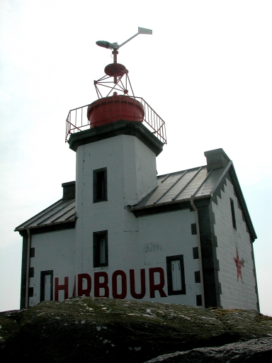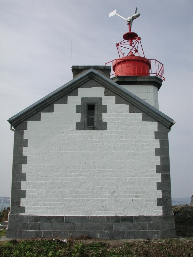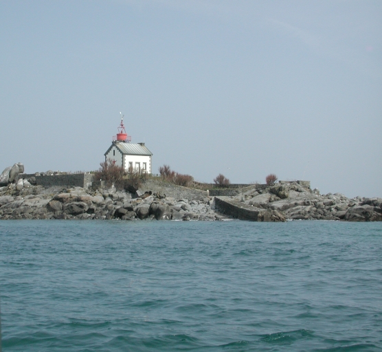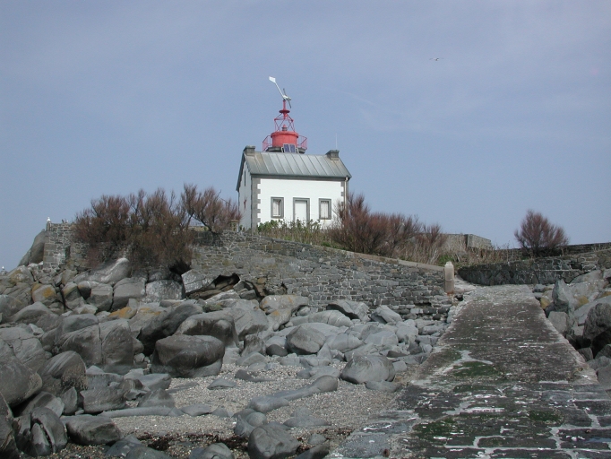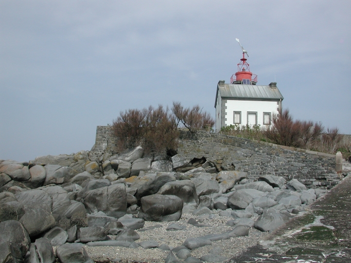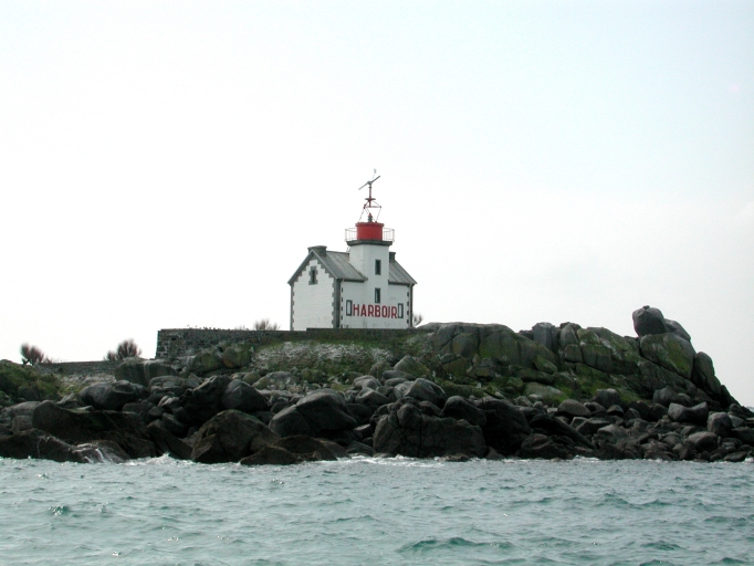 L'île Harbour est un îlot rocheux situé à 1, 8 km du rivage de Saint-Quay-Portrieux, face à la pointe de Saint-Quay encore appelée la pointe du sémaphore. Cette île, surmontée d'un feu datant de 1850 marquant l'archipel des îles Saint-Quay, est la plus haute de son archipel et la seule à abriter de la végétation. L'îlot a une superficie d'environ 25 ares. Le fanal de St-Quay est situé sur l'îlot Harbour, au large de St-Quay-Portrieux, à 1 mille et demi de la côte (2 km), au milieu de la chaîne de récifs portant le nom de 'Îles de St-Quay, protégeant les trois anses de la station balnéaire. Le fanal se compose d'une tourelle octogonale engagée dans un petit bâtiment de forme carrée de 7 m sur 7 m., comportant 3 ouvertures principales au sud (2 fenêtres et une porte) et 2 petites ouvertures à l'est et à l'ouest (fenêtres). Le bâtiment dispose d'un sous-bassement de 1 m de hauteur en pierres taillées de granite gris, avec 5 marches. La tour supportant la lanterne est entourée d'une balustrade. La maison accolée était destinée au logement du gardien. L'ensemble de l'édifice a un plan au sol globalement carré. La tourelle surmonte le faîtage de la maison sur sa façade postérieure. La hauteur de l'édifice au niveau du sol est de 13 m. A l'Ouest du phare, un enclos (autrefois jardin) de 25 m de côté est aujourd'hui en friches. La tour carrée a été construite en maçonnerie de pierres apparentes (granite gris), encastrée sur un bâtiment rectangulaire, avec chaînes d'angles. La maison-phare et sa tourelle sont peints en blanc pour la partie inférieure, avec partie supérieure rouge. On peut remarquer l'inscription en rouge sur fond blanc "Harbour" sur la façade Nord et le dessin d'une étoile peinte de couleur rouge sur la façade ouest (avec une seule petite ouverture). La lanterne peinte de couleur rouge est située sur la tourelle. Le feu domine de 5, 50 m le niveau des plus hautes mers, mais un écrêtement, nécessité par la forme irrégulière du rocher, a abaissé ce niveau de 1 m, de sorte que le pied de l'édifice se trouve à 0, 50 m. Remarques : les gardiens ont décoré avec des coquillages incrustés dans le ciment les murets et les escaliers extérieurs. Les deux pilastres en granite rose, au bout de la rampe d'accès, sont sculptés avec une ancre de marine et l'étoile du service des phares. La rampe d'accès est réalisée en moellons de granite avec un chapeau plate en pierre taillées (granite). Les murs de soutènement le l'enclos Est mesurent 5 m de hauteur. L'ancien kiosque a disparu. Le belvédère sud-est, où étaient situés les atelier, mesure environ 3 m sur 4 m avec un muret de 0, 80 m de haut. La cale débarcadère est construite en moellons de granite, avec un revêtement en ciment. Elle mesure 35 m de long, 3 m de large et 2, 50 m de hauteur avec une pente de 5%.