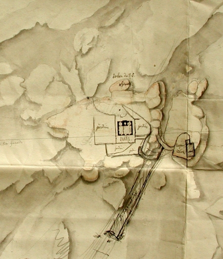 AD Côtes d'Armor. Série S ; sous-série S art. 588. Fanal de l'Ile Harbour : plan de la rade de Portrieux, premiers plans 1846-1851.