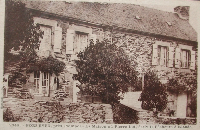 Cette ancienne maison de marin pêcheur datée du 19ème siècle fut la propriété de Guillaume Floury, qui recevait régulièrement l'écrivain Pierre Loti (Julien Viaud 1850-1923), lorsque celui-ci séjournait à Pors Even. C'est, d'après sa propre aventure amoureuse avec une jeune fille du pays de Paimpol (Pors Even), que Pierre Loti a puisé le sujet de "Pêcheur d'Islande", publié pour la 1ère fois en 1886. Ce roman connut un énorme succès et fit connaître l'épopée de la grande pêche en Islande et les nombreux naufrages dont furent victimes les marins du pays de Paimpol. La notoriété de son auteur et l'estime qui lui était portée localement, eurent pour reconnaissance, le nom de Loti porté par une goélette islandaise en 1901. Ce navire fit naufrage en mer d'Islande en 1905. C'est dans le village de Pors Even que Pierre Loti fit la connaissance de ceux qui allaient devenir les personnages de son ouvrage, en particulier Guillaume Floury, le 'Grand Yann'. La petite maison des Floury est située en bas de la côte de Pors Even, menant au port. C'est avec l'argent qu'il reçut du sauvetage d'un trois-mâts grec en 1884 que Yann Vras Floury (père de Guillaume) pu faire sur-élever sa maison d'un étage et remplacer la toiture en chaume par un toit recouvert d'ardoises.