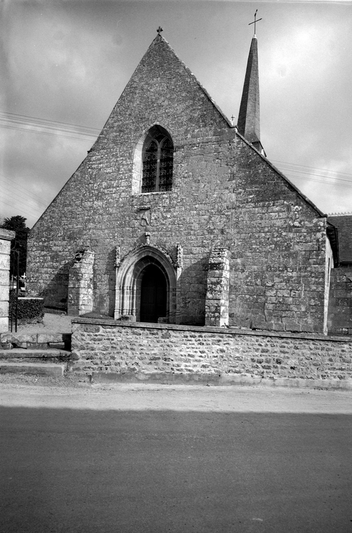 L´église paroissiale est encore partiellement entourée de son cimetière. L´enclos conserve à l´ouest un échalier de protection. Orientée à l´est comme la plupart des anciennes églises, elle est de plan en croix latine irrégulier et à chevet plat. Elle possédait au sud un porche qui a aujourd´hui disparu comme en témoigne la gouttière et sa gargouille incrustée dans le mur ouest de la chapelle sud qui forme bras de transept. Une sacristie est flanquée contre le mur nord du choeur. Le clocher en charpente est situé à la rencontre de la nef et du chœur, il se distingue par une flèche polygonale couverte d´ardoises. L´ensemble, de proportions harmonieuses, est remarquable à plusieurs égards. Le portail ouest de style gothique tardif porte la date en lettres gothiques de 1465 suivie de l´inscription IHESUS MA (RIA). Cette campagne de travaux correspond à la datation de l´église qui est par ailleurs relativement homogène, en dehors des travaux du choeur effectués au 18e siècle. Des armoiries en parties effacées sont encore visibles au dessus du portail ouest : blason avec un casque ouvert à lambrequins. Une litre seigneuriale bûchée à la Révolution est également visible à l´intérieur de l´église. La chapelle sud autrefois privative était réservée aux seigneurs de Beaumont dont le château se situe actuellement sur la commune de Guitté.La chapelle nord anciennement réservée aux seigneurs de la Roche est également appelée la chapelle de la Vierge ou du Rosaire.