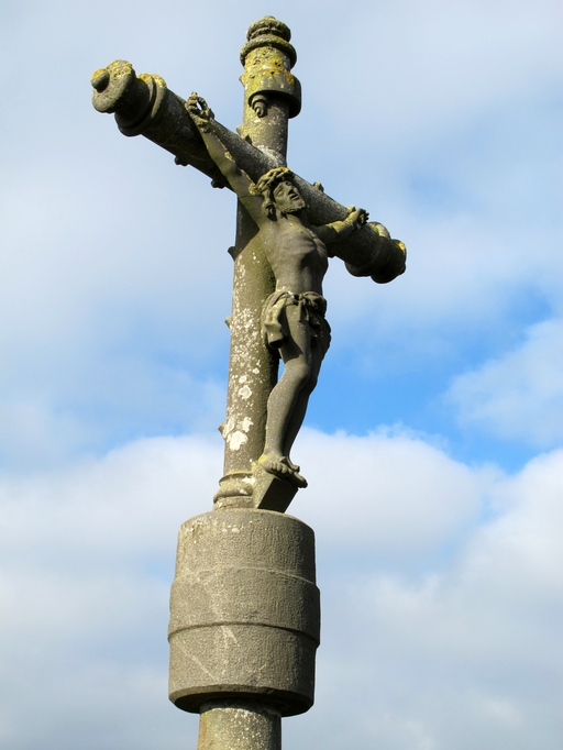 Croix de mission située le long du chemin allant de Plouaret à Keraudy. Elle a été élevée en 1870 (d'après date portée). Une ancienne croix est signalée sur le cadastre de 1835 ; son socle à entablement en granite a été retrouvé (déplacé) un peu plus au nord vers Pen an Gué.