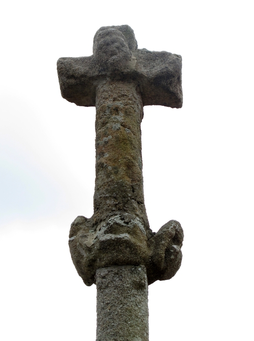 Croix de chemin située au milieu du carrefour à l'est-sud-est de la chapelle du Minihy. Il s'agit d'une croix en granite composée d'un emmarchement à degré unique et d'un soubassement portant un socle parallélépipédique à petit entablement sur lequel repose un long fût évasé de section octogonale à base carrée, à écots (la présence d´écots sur le fût symbolise les bubons ou tumeurs de la peste), sommé d´un chapiteau mouluré et d'une croix terminale. A l'avers, représentation du Christ en croix mort ; au revers : un Christ de pitié aux poignets et chevilles entravés attendant son supplice. Son visage placide exprime la résignation.