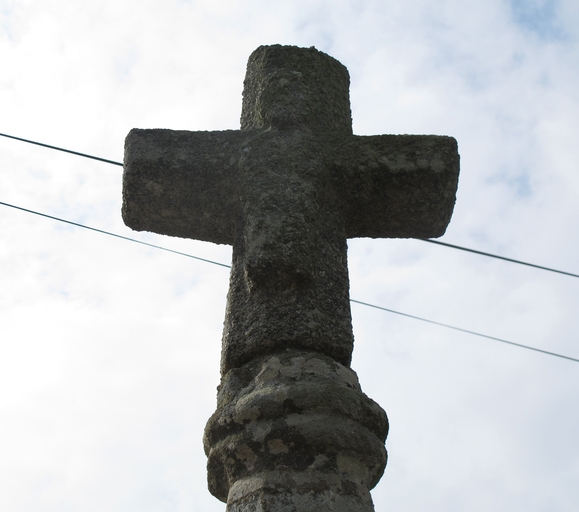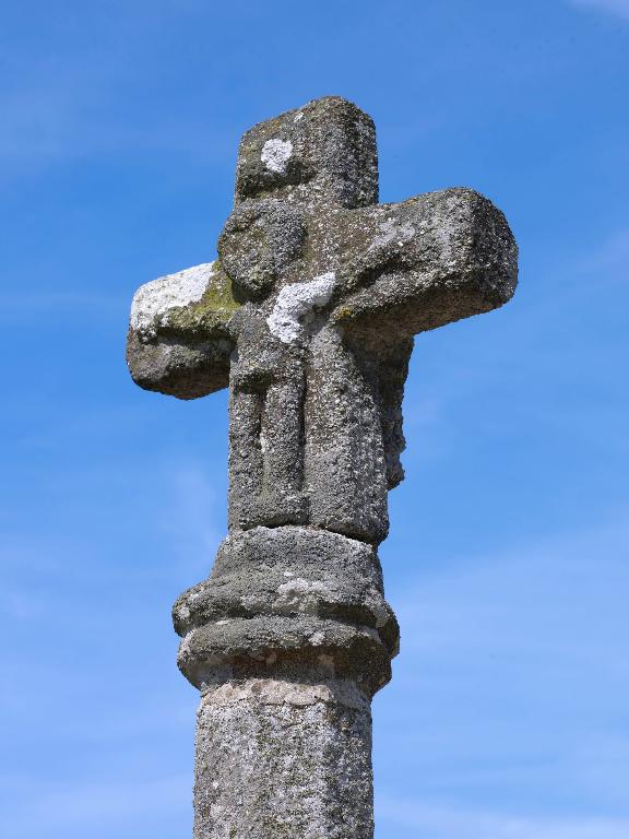 Croix de chemin située à un carrefour au nord de la chapelle Saint-Gildas et figurant sur le cadastre de 1835. Il s'agit d'une croix en granite composée d'un soubassement avec table moulurée portant un socle cubique aux angles abattus sur lequel repose un fût de section octogonale à base carrée sommé d'un chapiteau mouluré et d'une croix. A l'avers, représentation du Christ en croix mort ; au revers, une Vierge à l'enfant. Cette croix est datable du 18e siècle.