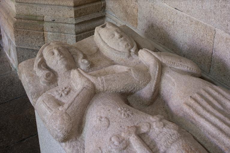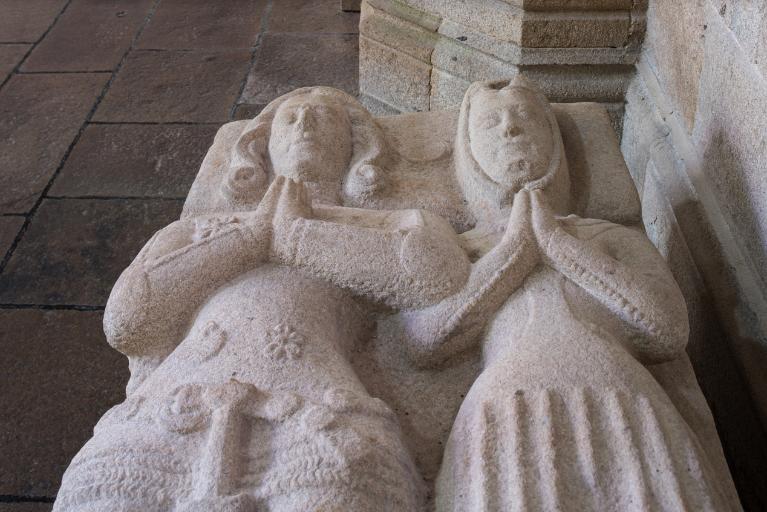 Au-delà de la première chapelle sud, une portion de mur aveugle correspond à la sacristie dont l'entrée est marquée par une porte en arc brisé à accolade et fleuron. Au-dessus, une fenêtre à croisée donnant sur le chœur intrigue : cette baie intérieure correspond à une pièce située à l'étage, desservie par un escalier séparé dont l'accès se trouve situé immédiatement après la porte de la sacristie. Cette pièce pourvue d'un accès indépendant, d'une élégante cheminée et éclairée au sud par une grande vitre à réseau flamboyant (restaurée au XIXe siècle), devait être couverte par une fausse voûte lambrissée en bois reposant sur des tas de charges en pierre. Le soin de mise en œuvre de cette pièce, son confort ainsi que sa fenêtre regardant vers le maître-autel incitent fortement à y voir un oratoire seigneurial conçu pour Jean II de Rohan, fondateur et « patron » de l’église, qui put servir ensuite pour les réunions du conseil de fabrique. La plupart des chapelles du chœur ont conservé un riche mobilier d'attache en granite sculpté : des retables à fortes moulures assortis de leurs niches crédences, parfois aussi accompagnés d'enfeus en arcade, comme dans la 4e chapelle nord, attestent leur affectation privilégiée à différentes familles de la noblesse.