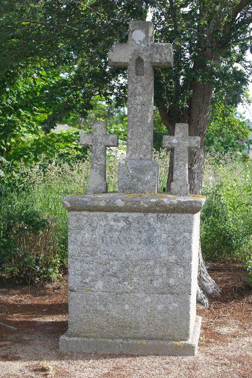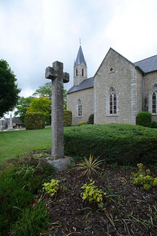 et indiquent des voies anciennes. La croix, du 17e ou du 18e siècle, placée à côté de l’église paroissiale n’est pas à son emplacement d’origine. Elle fut offerte par le recteur de la paroisse comme en témoigne son décor gravé d’un calice et son inscription partielle ELEVEE : R (ecteur). Deux autres croix, l’une située à la Bellangerie, l’autre à l’extrémité est de la commune sont érigées par des familles de la paroisse, la première par les Blanchard en 1899, l’autre dans le courant du 20e siècle par Jean Gicquel.