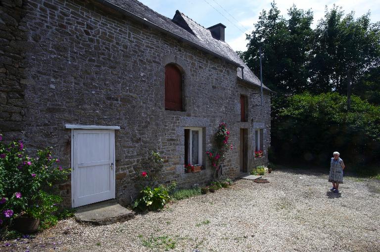 Cette ferme située plus au nord, présente quant à elle une organisation différente et des campagnes de constructions plus anciennes pouvant remonter à la fin du 16e siècle ou au début du 17e siècle. Le logis bien que modifié par des modifications d’usage, s’apparente aux logis rencontrés sur le territoire de la Rance à trois pièces au sol. La présence à l’étage d’une chambre haute est attestée par une fenêtre qui cohabite avec une gerbière à usage de grenier. La mixité des fonctions du logis qui regroupe une partie habitation et une partie exploitation ou de stockage est courante pour cette période et correspond à des usages fonctionnels afin d’assurer la protection et la surveillance des possessions de la ferme, troupeau ou autre source de revenu et récoltes aux greniers.