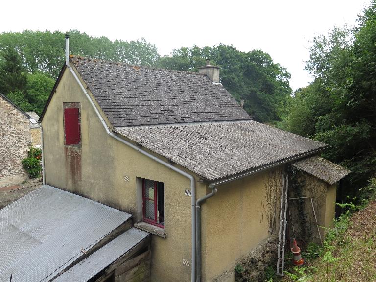 Maison surélevée, avec sous-sol pour éviter les inondations, de plan rectangulaire. La toiture de la partie principale est en ardoise. Une extension à la maison est présente côté ouest. Son toit est en fibrociment. Un appentis sur le côté nord de la maison est visible. En façade avant, la porte avec imposte est encadrée par deux fenêtres de deux vantaux de trois carreaux. Les encadrements de toutes ces ouvertures sont fait de granite. Un double escalier, soutenu par un arc, est présent devant la porte d’entrée. Sous ces escaliers, une porte mène au sous-sol. Sur le toit de cette façade avant, les ouvertures des combles sont des velux. Sur ce même toit, on observe une cheminée à l’extrémité sud construite en béton. Sur le pignon sud, six ouvertures sont présentes. Deux à l’étage, avec des encadrements en granite possèdent une barrière en bois. Une, au rez-de-chaussée, possède aussi un encadrement en granite. Les trois autres, dont deux portes, qui se situent sur la partie gauche du mur pignon possèdent des appuis en béton. Une fenêtre sur le mur pignon nord, sous la grange, est encadrée par du granite. On trouve aussi une porte encadrée par du béton. Deux autres fenêtres, à l’étage, visibles sont présentes sur le mur pignon nord. Une est encadrée par du granite et l’autre a un appui en béton. Deux fenêtres sur la façade arrière de la maison originelle sont encore visibles.