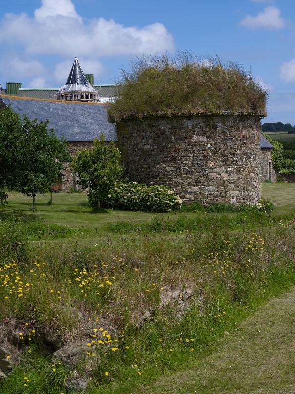 Autre originalité, la forme irrégulière des corps de latrines plaqués contre les pignons, de même que les jours flanquants percés à angle droit, sont adaptés au passage du chemin sur lequel ouvre le logis. Au-dessus des latrines de l'étage, un niveau entresolé dont l'accès est encore inconnu est percé des mêmes jours. cette disposition étonnante se retrouve bien au-dessus des garde-robes de la Roche-jagu à Ploezal que dans le manoir de Launay-Bazoin à sainte-Anne-sur-Vilaine. Cet aspect défensif non négligeable est confirmé par un système de grilles saillantes qui garnissait la totalité des baies y compris celle de l'oratoire. Un témoin de leur modèle subsiste dans la salle de l'étage.