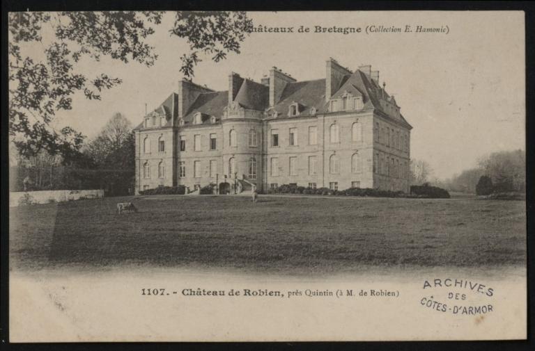 Contrairement à d'autres grandes familles parlementaires présentes dès la création du Parlement de Bretagne en 1554 par Henri II, les Robien y accèdent plus tard, en 1655, grâce à Sébastien de Robien (1633-1691). Fils de Christophe de Robien, seigneur de Robien, et de Marie Le Vicomte – issue elle-même d'une lignée parlementaire et apparentée au château de la Houssaye à Quessoy – Sébastien devient conseiller originaire cette même année, fonction qu’il occupera jusqu’en 1684. Il choisira d’ailleurs le château de Robien comme lieu de sépulture. Son fils, Paul de Robien (1662-1744), lui succède en tant que conseiller en 1684, avant d’être nommé président à mortier en 1706. En 1697, il épouse Thérèse du Louët de Coëtjunval dans la commune du Fœil, rattachée à leur château familial, où il réside régulièrement. Toutefois, il choisira Rennes comme lieu d’inhumation. Leur fils, Christophe-Paul de Robien (1698-1756), né au château, poursuit naturellement cette tradition en devenant conseiller en 1720, puis président à mortier dès 1724. Particularité notable : il entame sa carrière à seulement 22 ans, après des études à Paris, et restera en fonction jusqu’à sa mort à Rennes. Enfin, Paul-Christophe-Céleste de Robien (1731-1799) suit la voie tracée par ses prédécesseurs. Il occupe les mêmes fonctions parlementaires de 1749 à 1785, s'arrêtant quelques années avant les bouleversements de la Révolution. Il connait l’émigration, et son château est saisi comme bien national.