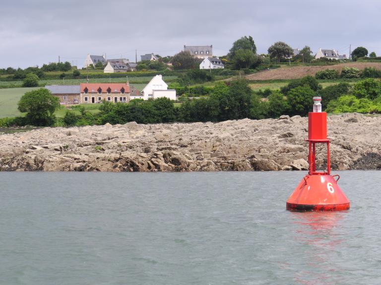Venant du large, nous trouvons la bouée bâbord de Crublent, la bouée bâbord du Corbeau, en face la bouée tribord de la Pierre à l’Anglais, les deux tourelles de Pen Ar Guézec et la bouée tribord du Petit Pen ar Guézec, à terre les perches tribord de Dourounés, du Crapaud, du Petit Taureau et des Taurillons, la bouée tribord du Taureau, la perche tribord Laouénan, les bouées bâbord de Goarviniou et de la Pierre à Chenal, les perches tribord de Sili et du Seigle, la perche tribord de Pors Don, la bouée bâbord de Turkès, la bouée tribord du rocher Gorrec face la Roche Jaune, la bouée bâbord de Gorrejou, les balise et bouée tribord de la Pointe Jaune, la perche tribord de Guersallou, la perche bâbord du Trépied, celle tribord de Rohou, puis celle bâbord du Carpont Guersallou, la bouée tribord de la Normande, la bouée bâbord du Ven, la perche bâbord de Kerantrez, la perche tribord du Barzic , et en dernier les bouée et perche tribord de Pors Meur.