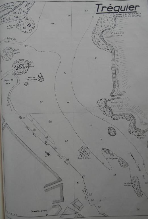 Au moment de ce sinistre maritime, un des pilotes de la rivière de Tréguier se nomme « Tugdual Guillou, époux d’Aliette Rémond, demeurant en la métairie de l’île d’Erc’h en Plougrescant », nous dit Pierre Delahaye dans son étude sur l’Histoire de Tréguier. Ceci prouve que les premiers pilotes de Tréguier étaient basés à l’embouchure de la rivière plutôt qu’à Tréguier, une habitude que l’on retrouvera par la suite. Un autre pilote est cité pour la même période ; il s’agit de Gilles Menguy, « pilote côtier qui vient de s’engager en qualité de capitaine de prise sur un corsaire de Tréguier, dont nous ignorons tout ». Nous retrouvons ce pilote dix ans plus tard lors d’un événement particulier, peut-être même unique dans les annales du pilotage, une dispute entre deux pilotes sur la route à tenir pour sortir du port, une dispute qui va finir mal d’ailleurs, puisque trois hommes, dont ce pilote, trouvent la mort, noyés. La relation nous dit que Charles Le Du, l’autre pilote, était le plus ancien pilote. Ceci porte donc à trois le nombre de pilotes pour la station de Tréguier à la fin du 18e siècle, renseignement non retrouvé dans les archives de la Marine qui n’ont vraiment été tenues sur registre que vers 1825.