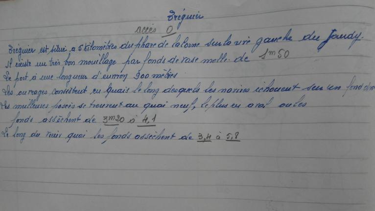4. Rapport sur le naufrage du brick-goélette Louis-Marie, le 27 février 1892 en rivière de Tréguier, capitaine Bernard, maître au cabotage. Le brick devait appareiller le 27 février du quai de Tréguier à la marée du matin pour descendre la rivière, il y avait légère brise de Sud-Est. Le bâtiment étant un peu grand pour cette navigation, le pilote avait demandé au capitaine de prendre un bateau d’aide, ce qui fut fait. Ce bateau n’arriva qu’au moment où il y avait déjà un pied de baissée, le pilote dit cependant que le temps était propice pour partir avec un grand bateau d’aide. Le capitaine se décida alors à appareiller à six heures un quart du matin. A peine le Louis-Marie eut-il dépassé le mouillage de Tréguier que le vent tourna à l’Est et même à l’Est-Nord-Est, il fallait refouler le courant pour regagner le mouillage ou louvoyer pour descendre la rivière, c’est cette dernière solution qui fut adoptée. Les deux premiers bords se firent sans accident mais au moment où le bâtiment allait virer pour la troisième fois avec l’aide du bateau qu’il avait pris, une rafale de Sud-Est vint le masquer et le faire culer vers la baie de Kerbalange. L’ancre de tribord fut mouillée de suite mais n’empêcha pas le navire de toucher par l’arrière sur les rochers de la pointe de cette anse. Une anse à jet fut mouillée dans le chenal et on put faire remuer le bâtiment en virant sur les deux ancres. Malheureusement la mer baissait rapidement et les ancres chassèrent, le bâtiment se trouva échoué sur les roches en donnant de la bande sur bâbord. Dans la journée il glissa et tomba sur la vase du chenal dans la même position. On fut obligé de le décharger et de le vendre sur place. La perte de ce bâtiment est due à une saute de vent et aux remous de courant qui auraient été évités si l’on avait appareillé comme on le devait une demie heure avant la pleine mer. Le pilote a donc commis une imprudence en conseillant au capitaine de partir dans ces conditions, et le capitaine en suivant ce conseil après avoir les observations nécessaires n’a pu encourir aucune responsabilité. En conséquence, la Commission Supérieure des Naufrages émet l’avis que l’aspirant-pilote Le Guillou a encouru un blâme sévère pour l’imprudence qu’il a commise, que le maître au cabotage Bernard en suivant les conseils donnés par le pilote n’a encouru aucun blâme. » (AN Mar CC/4/260)