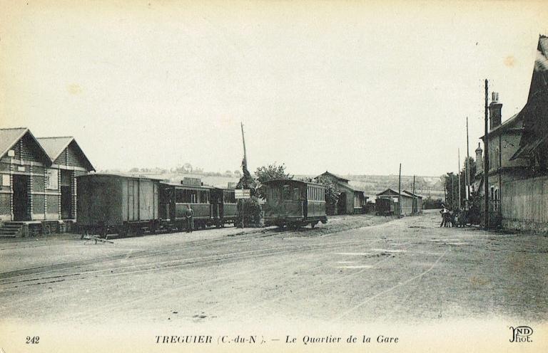 En 1884, le docteur Guézénec, exerçant à Tréguier, marié à Caroline le Goaster, fils d’un capitaine de Bréhat mort aux Indes, achète pour son fils Daniel la petite entreprise Biannic (un ouvrier et une brouette !), établie sur le port à l'emplacement de l'actuel hôtel Aigue Marine. L’entreprise de négoce de bois s'agrandit et demande le 9 mars 1909 à être raccordée par rails à la gare des Chemin de Fer des Côtes-du-Nord, construite en 1904 sur le terre-plein d’en face. La même année, elle demande un deuxième embranchement pour le chantier de bois qu’elle possède au nord du grand quai ; elle l’obtiendra en 1910 après bien des discussions. A cette occasion le maire, Gustave de Kerguézec, se plaint des abus de Guézénec qui envahit les quais de Tréguier et perturbe la circulation par ses transports de bois...