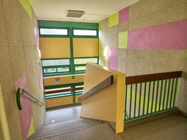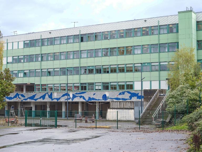 Cette intervention modifie très sensiblement l'aspect des bâtiments, bien que le principe du mur rideau soit conservé. En sus de l'emploi de grands panneaux en fibres-ciment (sans amiante), colorés ou blancs, et de menuiseries en aluminium, le dessin des élévations de l'internat est bouleversé et les pignons occultés. Un préau fermé (ou sas) est également construit entre les bâtiments C et B. Le marché des travaux, attribué à l'entreprise Turmel, mandataire d'un groupement de cinq sociétés, atteint 1,64 millions d'euros.