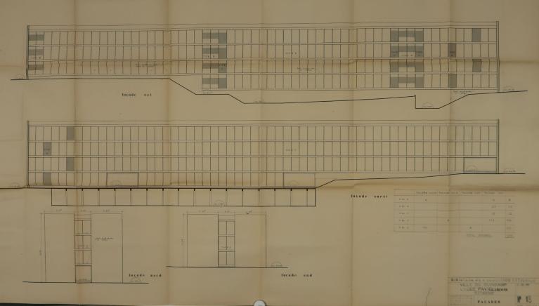 Le devis descriptif établi le 30 mars 1960 évalue à 3,5 millions de franc le coût de la construction. Il indique que les architectes ont fait le choix de "murs rideaux" (470 000 francs), agrafés sur la trame de poteaux, poutres et planchers en béton armé.