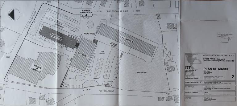 En 2001, la Région Bretagne commande un diagnostic à l'architecte Philippe Fauquert, pour les bâtiments B et C (internat-logements et restauration). Il établit que : "Les façades existantes n'assurent plus l'étanchéité [de l'internat] à l'air, à l'eau et thermique nécessaires au vu des normes actuelles. La dépose doit être envisagée dans son intégralité". Le même architecte se voit confier la maîtrise d'œuvre des travaux. Il remet un premier avant-projet sommaire, en 2002. La déclaration de travaux est acceptée le 29 juillet 2004. Leur réception a lieu le 8 novembre 2006.