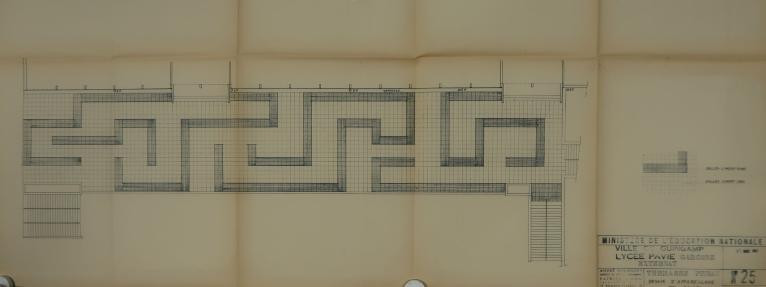 L'année 1958 est également celle de l'étude du plan masse. La direction des équipements scolaires, universitaires et sportifs (D.E.S.U.S.) choisit, le 29 septembre, entre deux options, celle qui propose un internat en forme de "tour" de 6 étages sur rez-de-chaussée. Le plan masse est approuvé par le C.G.B.F le 7 avril 1959. Ce même conseil précise, le 17 novembre, le phasage de la construction de ce lycée prévu pour 920 externes et 552 internes : elle débutera par l'externat, sur le terrain Cadolan, et se poursuivra, dans un second temps, par l'internat, sur le terrain Doniol. Ce choix avait été déploré par le conseil d'administration du lycée, le 19 décembre 1958, car : "Les dortoirs actuels présent[aient] un entassement inhumain de lits dans des conditions d’hygiène déplorables." Précisant qu'il n'y avait qu'un WC pour 170 élèves. Le CA avait dû se satisfaire d'une solution provisoire : la mise à disposition de baraquements installés sur le jardin public à côté du lycée, au centre-ville. Autre témoignage de la délicate situation de l'internat, la demande adressée à l'architecte G. Beck pour aménager le château de Cadolan afin d'y loger 20 internes. Ce bâtiment a été détruit pour construire le lycée.