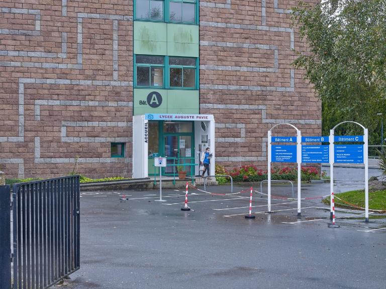 Le lycée Auguste Pavie de Guingamp est l'héritier de l'école primaire supérieure (E.P.S.). En 1916, cette dernière remplace l' "école mutuelle" qui existait déjà au 19e siècle, et s’était installée, en 1909, dans les bâtiments de l'ancien hôpital général. Des bâtiments neufs sont construits après la Première Guerre mondiale, à proximité immédiate, place du Champ-au-Roy. L’E.P.S. est ensuite érigée en collège, en 1942. Ce dernier prend en 1949 le nom d'Auguste Pavie, explorateur et diplomate de la fin du 19e siècle, en Extrême-Orient, qui avait fait ses études à Guingamp. L'établissement devient lycée en 1951.
