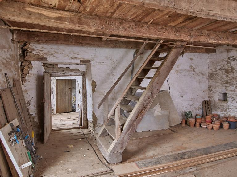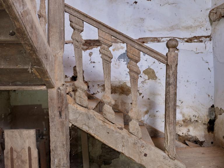 - escalier dans-oeuvre : escalier tournant à retours avec jour en charpente