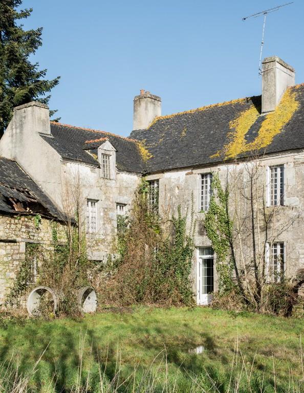 La maison principale est édifiée en moellon de schiste, recouvert d'un enduit imitant la fausse pierre de taille autour des fenêtres. Elle présente une élévation ordonnancée à six travées, dix fenêtres et deux portes, soit une longueur totale de 23, 60 mètres. L'accent est mis sur la corniche moulurée en granite et la porte d'entrée principale, encadrée de pilastres et surmontée d'un fronton triangulaire. Le rez-de-chaussée abrite d'ouest en est : la cuisine, l'entrée d'origine avec un escalier tournant à retours, la salle à manger, l'entrée principale et le salon. Longeant le mur nord, un couloir de distribution réservé aux domestiques permet de desservir la salle à manger et le salon, sans avoir à les traverser. L'appentis nord, à usage de cellier, est accessible depuis le vestibule d'entrée, sous l'escalier, et depuis le palier de l'étage. Cinq chambres occupent l'étage dont trois sont desservies par un couloir qui longe le mur nord. Une aile est construite en retour d'équerre à l'ouest pour abriter des appartements supplémentaires. Un puits est adossé à la façade, à gauche de l'entrée.