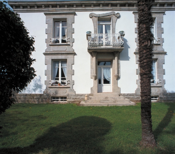 Ancien logis déclassé construit en appareil mixte de schiste et de granite, parties supérieures rehaussées, chaume disparu. Le nouveau logis de plan double en profondeur, à quatre pièces par niveau, construit en moellon couvert d'enduit, enferme un escalier tournant à retours avec jours en charpente. Les baies, les chaînages d'angle et la corniche sont en granite provenant des carrières de Coadry à Scaër. Les ardoises sont d'origine et proviennent de Saint-Goazec. Les parties en fer forgé auraient été exécutées par des artisans d'origine italienne.