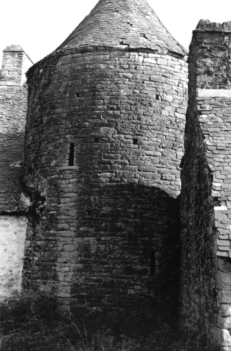 Logis de plan rectangulaire avec tourelle d'escalier hors oeuvre. Cour dallée et puits circulaire portant des armoiries non identifiées présentées par deux lions affrontés. Morcellement de la propriété en 1860 en vue de la construction de la voie ferrée.