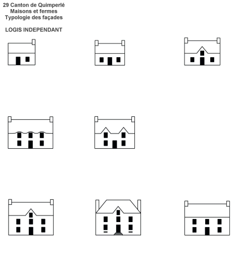 Un dossier collectif a été ouvert au niveau de chaque commune. Ce dossier contient l´analyse des caractéristiques des maisons et des fermes situées aussi bien en secteur rural que dans les bourgs et villages, à l´exception de l´habitat urbain de la ville de Quimperlé, traité dans un dossier particulier. Sur un total d´environ deux cents maisons et hameaux recensés dans le cadre de l´inventaire topographique, vingt-six ont été retenus pour étude. Le corpus couvre une période de 1650 à 1930, avec un fort taux de reconstruction entre 1850 et 1914. Les bâtiments portent progressivement l´empreinte de modèles standardisés dont l´enseignement agricole, particulièrement actif à Quimperlé, se fait le relais ; étables et écuries mieux aérées, logis à étage plus spacieux et granges et remises plus grandes caractérisent un renouveau généralisé des bâtiments ruraux. Fréquent, le déclassement des logis anciens en dépendances agricoles est une conséquence de la construction de nouveaux logis. Le regroupement de plusieurs unités d´exploitation au sein d´un hameau caractérise l´habitat le plus ancien. Les exploitations sont organisées suivant trois schémas récurrents : bâtiments disposés en alignement, bâtiments disposés autour d´une cour plus ou moins régulière en L ou en U et, plus rarement, regroupement, suivant un plan massé de type modélisé, du logis, du cellier et d´une resserre sous un même toit. Les formes d´alignement vont de la simple association d´un logis et d´une étable aux «longères» associant plusieurs logis, étables et remises. Le nombre de granges, bâties ou rebâties dans la seconde moitié du XIXe siècle, est élevé. Certains bâtiments à fonctions multiples peuvent abriter, sous le même toit, un four à pain, un cellier et un logement, souvent pour ouvriers agricoles. L´existence d´un puits par ferme est la règle, même en cas d´habitat regroupé où le puits à usage commun reste l´exception. La majorité des puits est de structure carrée alors que les exemples les plus anciens sont circulaires, avec des margelles monolithes en granite ou en schiste. Comme dans le Morbihan voisin, les superstructures sont en pierre et portent parfois, sur la traverse, la date et un décor à boules ou une croix. Une dizaine de petites soues à cochons circulaires, à l´origine couvertes de chaume, a été localisée, semblables à celles répertoriées dans la vallée du Scorff. Les fours à pain, solides constructions semi-circulaires, sont encore nombreux, même si, d´après le cadastre ancien, le taux de disparition semble élevé. Ils sont souvent situés à l´écart des bâtiments d´exploitation à cause des risques d´incendie. Le recours au schiste extrait sur place et sur le littoral où il affleure, est majoritaire pour les constructions les plus anciennes. L´encadrement des baies est en schiste ou, pour les périodes plus récentes, en granite extrait à Moëlan ou Pont-Aven. L´enduit en façade fait son apparition au milieu du XIXe siècle. Dans les années 1930, selon une mode introduite par des maçons d´origine italienne installés à Lorient, il est parfois coloré. La brique, qui fait son apparition vers 1860, est habituellement réservée à l´encadrement des baies ou, associée au granite, aux chaînages d´angle. Les couvertures traditionnelles en chaume, notamment en paille de seigle, ont disparu, à l´exception de quelques vestiges aujourd´hui couverts de tôles ondulées. A partir de 1830, le chaume est progressivement remplacé par l´ardoise. Actuellement, le recours au végétal en couverture est perpétué, d´une manière marginale dans le cadre de restaurations. Entre 1920 et 1940, l´emploi de la tuile mécanique en couverture tend à s´amplifier, aussi bien en cas de réfections d´anciennes toitures en chaume que pour de nouveaux logis. Entre 1929 et 1939, l´entreprise en maçonnerie Goésin à Clohars-Carnoët utilise essentiellement des tuiles provenant des tuileries Perrusson Desfontaines à Ecuisses (Saône-et-Loire) ; elles sont encore en place sur certaines maisons. Le classement en deux grandes catégories, «l´habitat mixte», caractérisé par la cohabitation des hommes et du bétail sous le même toit, et le «logis indépendant», défini par l´absence de la cohabitation entre hommes et animaux, peut être appliqué à l´architecture rurale du canton de Quimperlé où la seconde catégorie arrive très nettement en tête et au sein de laquelle le logis à un étage et trois travées l´emporte largement. Pour les logis à étage les plus anciens (XVIIe siècle), l´escalier extérieur en pierre donnant accès à une pièce à feu était sans doute une configuration très répandue mais peu d´exemples restent identifiables. Le plan à deux pièces par niveau, avec couloir central délimité par des cloisons en bois et enfermant l´escalier, est majoritaire. Entre la maison urbaine et la maison rurale, la différence typologique à tendance à s´estomper dès la seconde moitié du XIXe siècle.