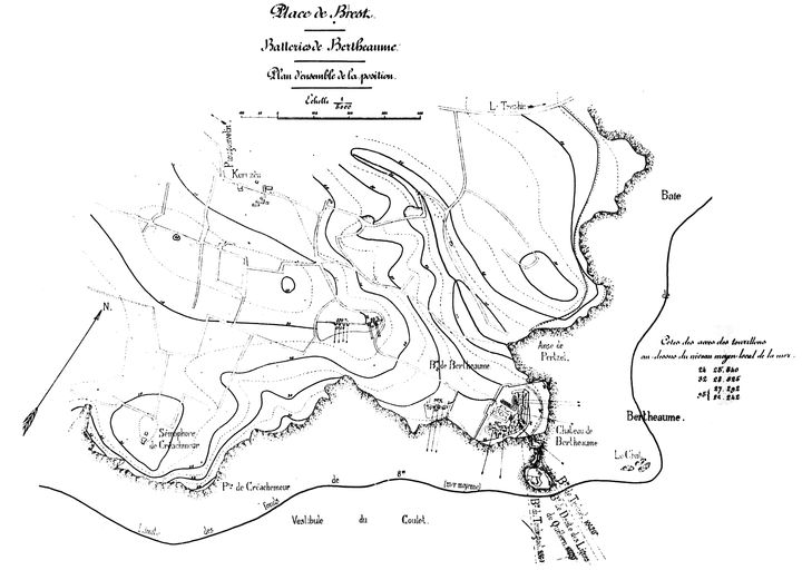 Le fort de Bertheaume situé sur un îlot rocheux sur la côte léonarde est occupé depuis la protohistoire. Au Moyen-Age, une forteresse se dressait sur le rocher... mais elle est détruite vraisemblablement en 1558 par une flotte anglo-flamande. Dès 1683, Vauban s'intéresse à l'emplacement de l'îlot de Bertheaume pour établir une batterie de canons à deux niveaux de feu et des mortiers. Les canons sont mis en place pour la campagne de 1694. L'objectif est de protéger le mouillage du Trez Hir d'une bombarderie ennemie en coordination avec les autres batteries de côte. Le fort de Bertheaume est agrandi successivement en 1695 et 1699.
