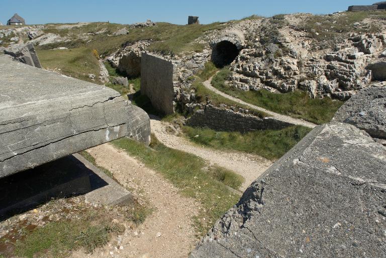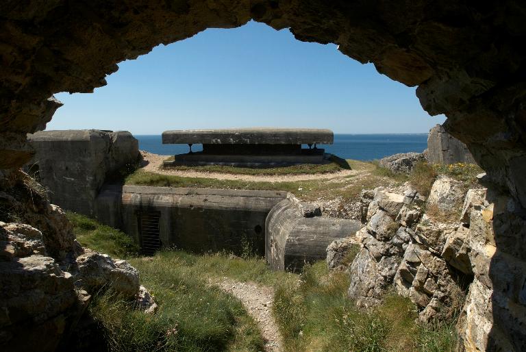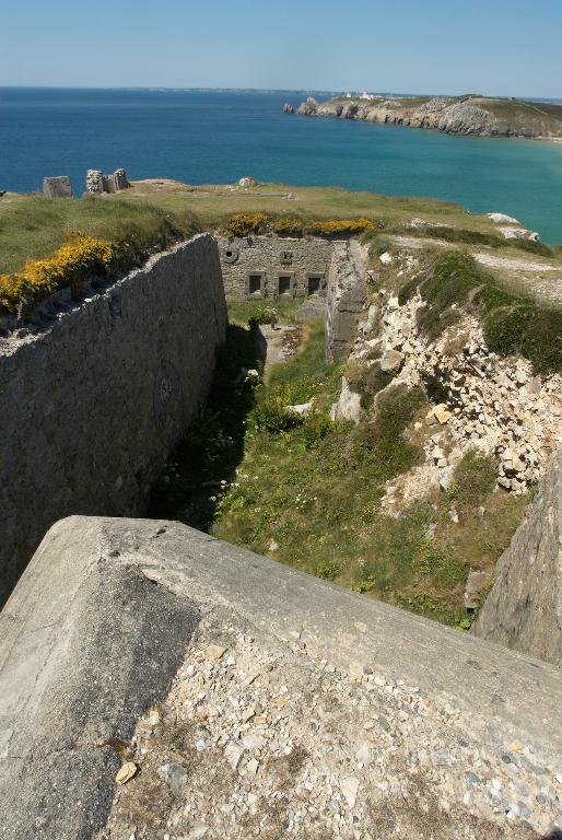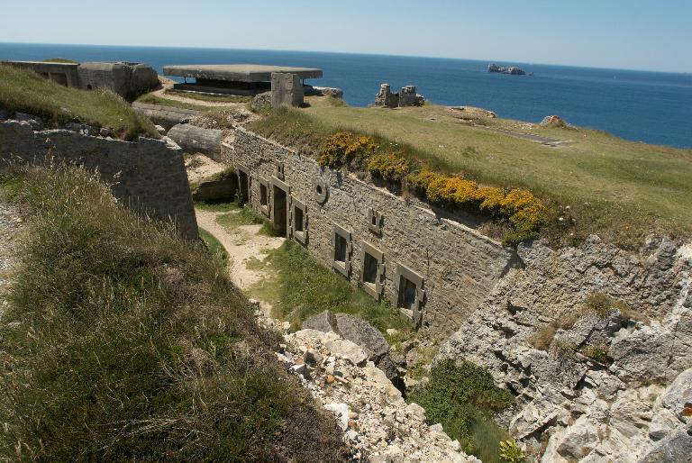 Batteries (4 canons G de 24 cm modèle 1876, 4 canons de 19 cm modèle 1875-1876, 4 canons G de 95 mm sur affûts G de côte), poste de projecteur (Cr 345), Pointe du Toulinguet (Camaret-sur-Mer)