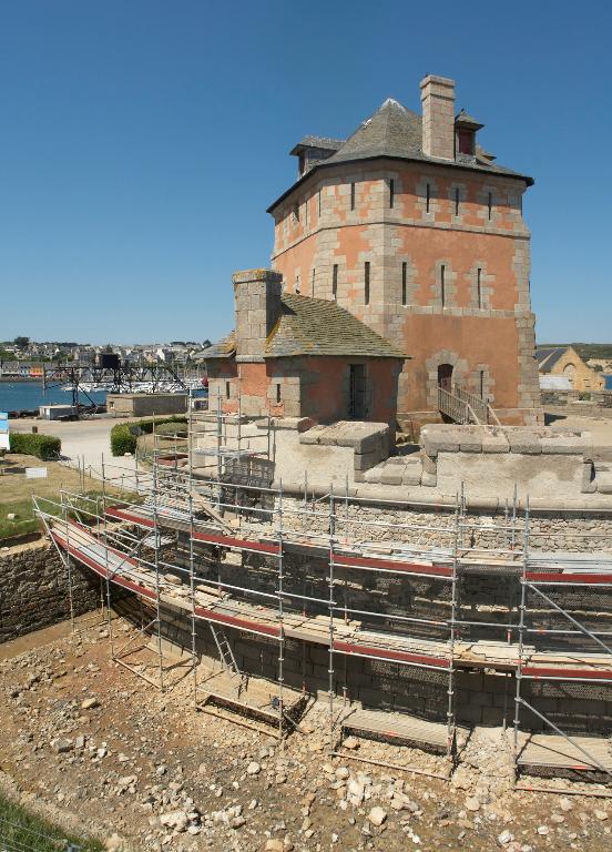 L´ingénieur Jean-Pierre Traverse est chargé de 1689 à 1700 de l´achèvement des travaux du port, du château de Brest et de la défense de la côte de Cornouaille (rive sud du goulet) comprenant les batteries de Cornouaille, de la pointe des Espagnols, les lignes de Quélern, la tour et la batterie basse de Camaret. La fortification de Camaret est chiffrée en détail en 1690 : l´unité employée pour mesurer les travaux est alors la toise (soit 7,4 m³ de matériaux). Le coût de l´ouvrage est ventilé comme suit : le "remuement des terres et des cailloux" se monte à lui seul à 10% du prix total de l´ouvrage (422 toises, soit plus de 3 120 m³). La "maçonnerie" tant de la batterie que de la tour et de la "communication de derrière" 38% (un volume de 243 toises³ : 1 800 m³). Le pavage en carreaux de pierres de taille 130 de la plate-forme, "la bonne terre pour former les parapets de la batterie" et le "placage du gazon" (sur plus de 110 m²) représentent 29 %. La fabrication et la pose du "pont et la porte, couverture de la tour, charpenterie, planchers, portes et fenêtres comprises" s´élèvent à 3 000 livres soit 23 % du prix total.
