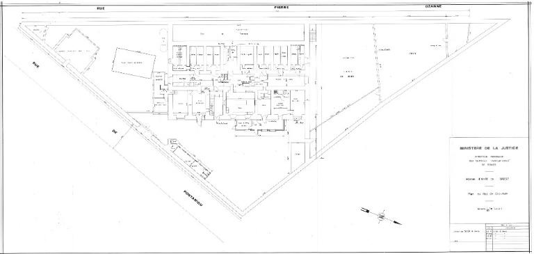 En pente vers l’est, la parcelle de la prison - en forme de triangle - est délimitée par un haut mur de clôture en maçonnerie de moellon, couronné par endroit de fils barbelés et de morceaux de verre fichés dans du ciment. Côté rue Pierre Ozanne et cours de promenade nord et ouest, le mur de clôture est surmonté de hauts grillages.