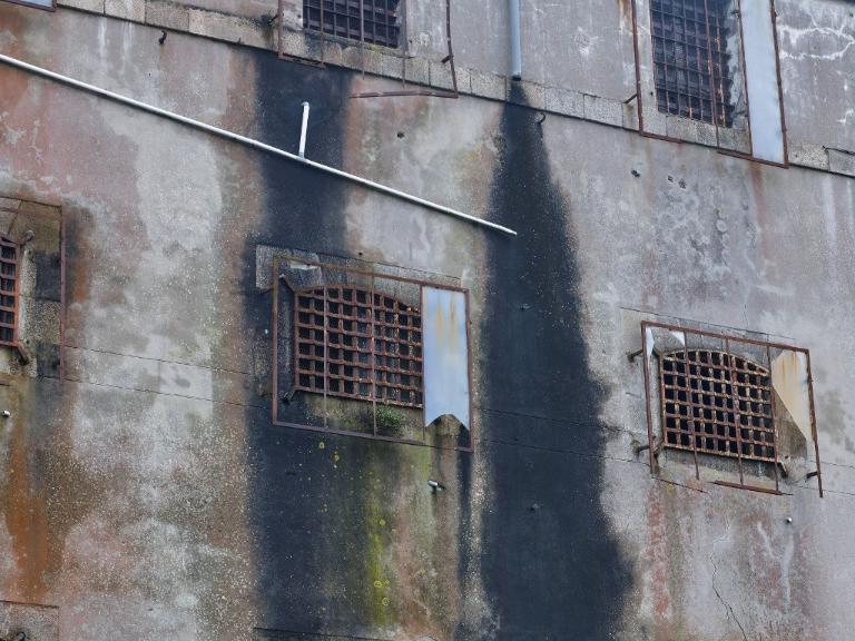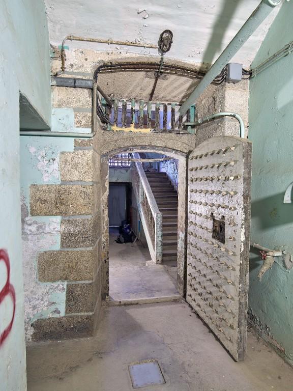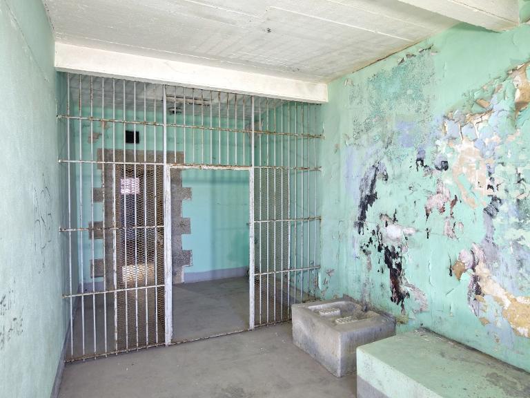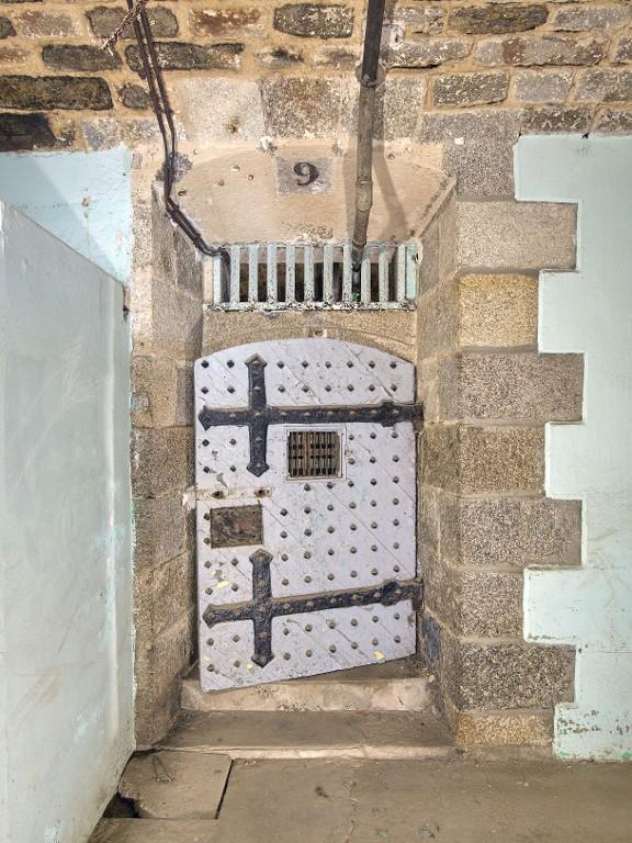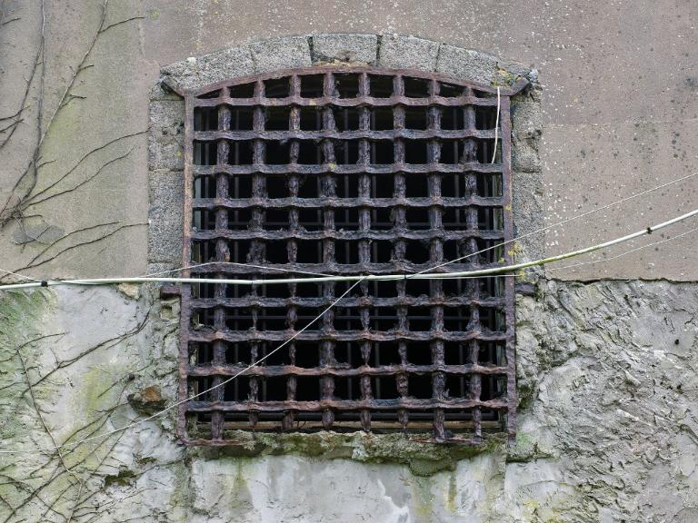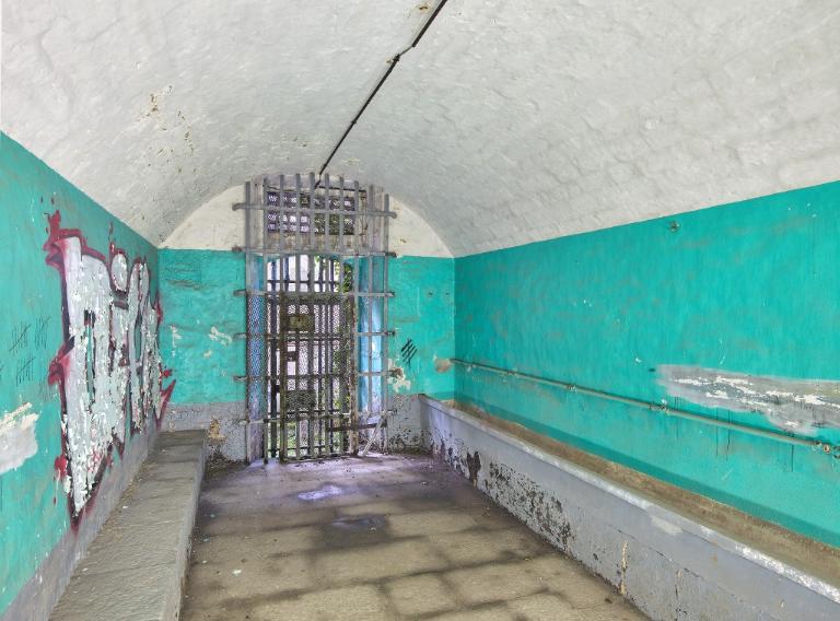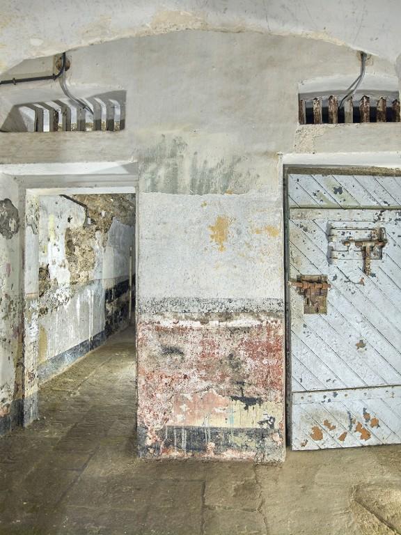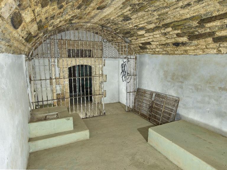 Aux extrémités du couloir central se trouvent des fenêtres en arc segmentaire avec grilles permettant éclairage et ventilation. Une grille, dont on voit encore les gonds dans le couloir central, divisait la prison en deux quartiers distincts.