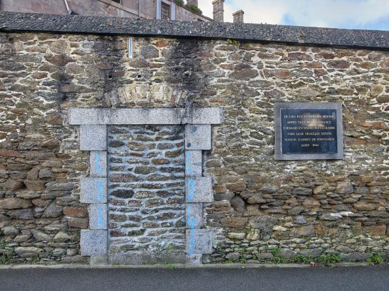 Côté rue de Pontaniou, une plaque commémorative fixée sur le mur de clôture de la prison, rappelle les épisodes douloureux de la Seconde Guerre mondiale : "Ce lieu fut le dernier séjour après tant de souffrance d’hommes entraînés par la guerre vers leur tragique destin Maison d’arrêt de Pontaniou août 1944".