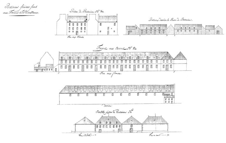 Datée de 1807, les élévations des établissements maritimes du port de Brest pour le plan-relief figurent la "prison de Pontaniou" située face aux formes et la "nouvelle prison de Pontaniou" couverte en pavillon. Vers l'est, face à la levée, la nouvelle prison comporte un rez-de-chaussée avec deux portes, un premier étage à huit travées de fenêtre et un étage de comble percé de quatre lucarnes ; à l'ouest, face au mur, la façade est totalement dépourvue d'ouverture ; le pignon nord comporte une porte et une fenêtre au premier étage.