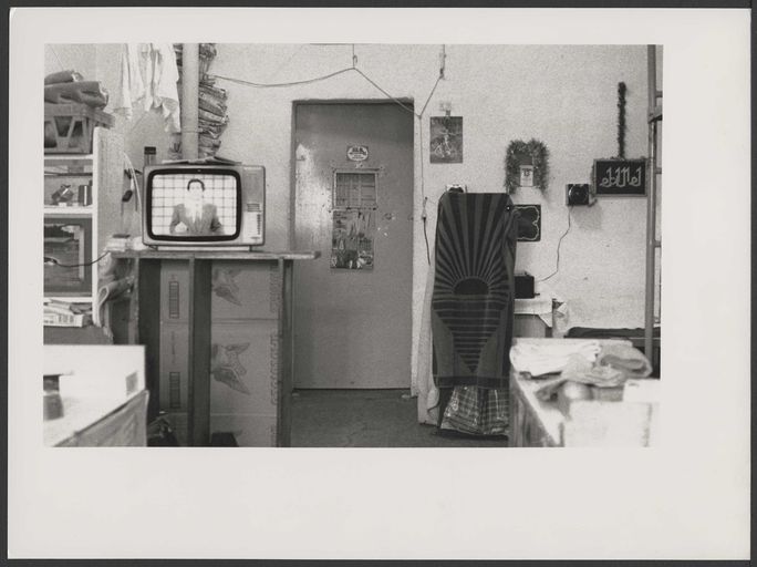 Peintures sur papier collé sur le murs et graffitis de l'artiste Paul Bloas.