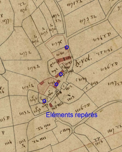 Grand hameau dont la structure a peu évolué depuis le premier plan cadastral de 1818, contrairement aux fermes construites entre le 17e et la première moitié du 19e siècle ; elles ont disparu, sont en ruines ou ont été dénaturées depuis 1975, date d'une enquête précédente.