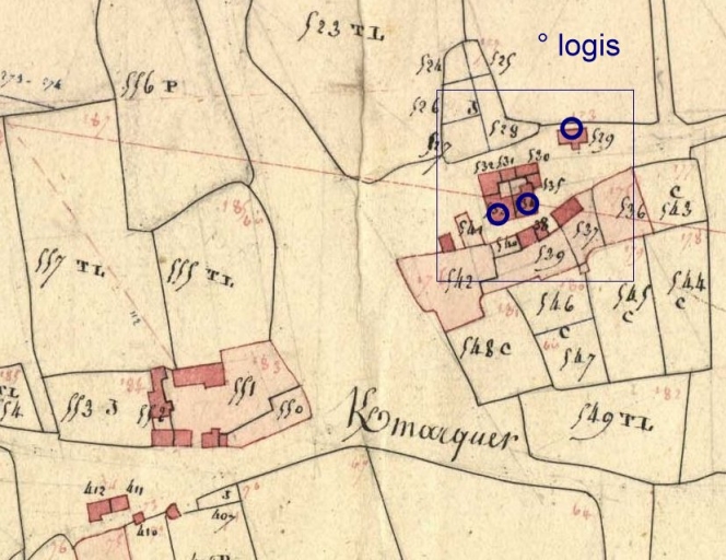 Selon le cadastre de 1812, le village de Kermarquer était, comme encore actuellement, composé de deux exploitations distinctes. La route passait, avant le changement de tracé, au nord et sud des constructions. L'ensemble est composé d'éléments bâtis antérieurs à 1812 : deux anciens logis de ferme du 17e siècle à étage (remaniés) et un logis de ferme en rez-de-chaussée situé au nord des précédents. Le hameau a été agrandi vers 1920 par l'ajout, à l'ouest, d'un nouveau logis associé aux communs. Kermarquer conservait en 1994, au nord-ouest, les vestiges d'une buanderie.