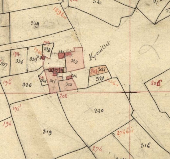 Le logis de la seconde moitié du 17e siècle, avec son escalier de distribution extérieur, était sans doute le vestige d'un logis plus vaste ou double comme en témoigne le cadastre de 1812, les traces d'une porte et la reprise de maçonnerie visible au pignon. L'édifice a disparu après l'enquête de 1970 qui fait état de la dépose de l'ancienne toiture en ardoise. Le nouveau logis date de la fin du 19e ou du début du 20e siècle.