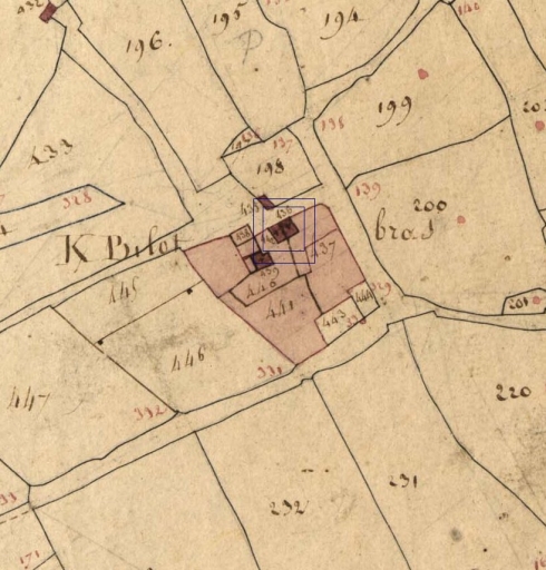 Ce logis de 1681 possédait au moins un escalier de distribution extérieur, vraisemblablement deux, comme semble le confirmer le cadastre de 1812. Le lieu est alors appelé Kerbilot (Kerbilo), en rapport avec l'ancien manoir situé à peu de distance. La porte ouest porte les monogrammes des commanditaires, la date de 1681 ainsi qu'une marque de marchand de toiles. Le puits, associé à un abreuvoir et des auges, date du 19e siècle, tout comme le nouveau logis construit à l'est.