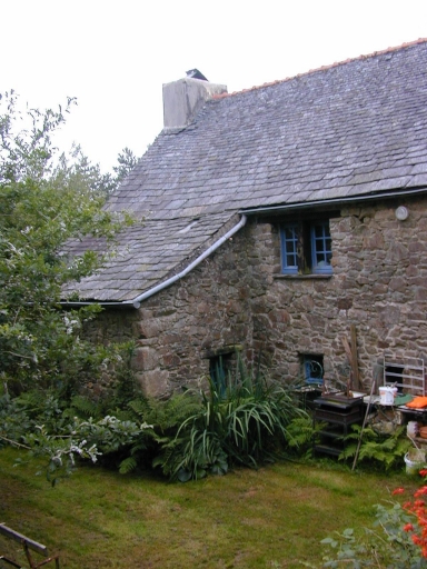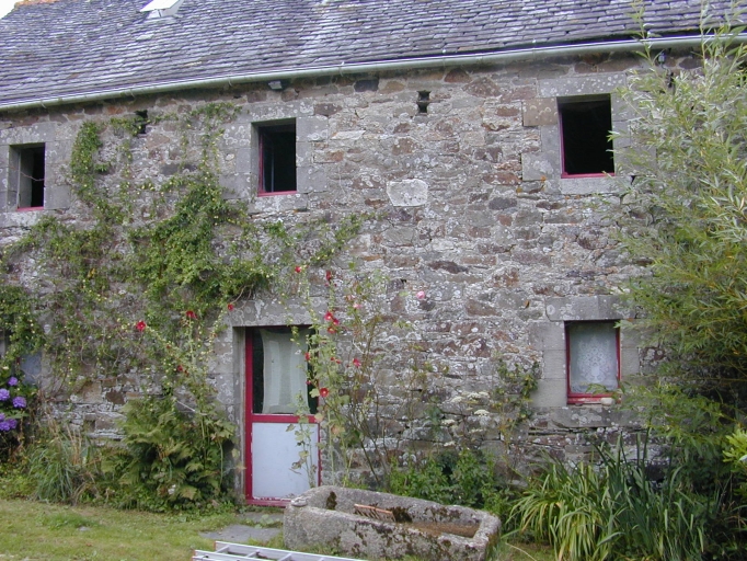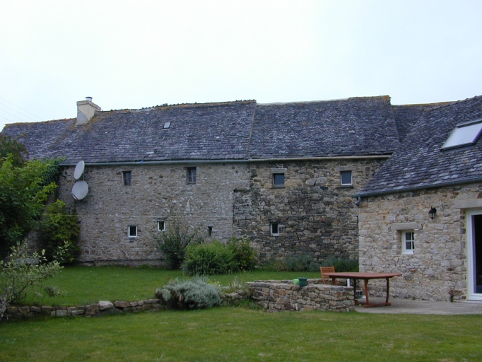 Repérage de cinq types de logis : 1. Avec escalier de distribution extérieur (disparu) : logis 4 (1668). 2. A étage et avancée à toit rampant : logis 5 (1806, remanié). 3. Association de trois travées d'un côté et avancée à toit rampant de l'autre : logis 6 (1845). 4. A étage et avancée à toit en bâtière : logis 2 (vers 1846). 5. A étage et trois travées : logis 1 (1915) et logis 6 (1879). Les linteaux sont partiellement en bois, sauf pour les constructions plus récentes, en granite, ou, exceptionnellement, en kersantite (logis 6), ce dernier conserve également, encastré dans le mur sud de la salle, un grand charnier en pierre. Deux corps de bâtiments conservent des faîtages en ardoises ajourées (lignolets) ; celui du logis 4 porte la date de 1920.