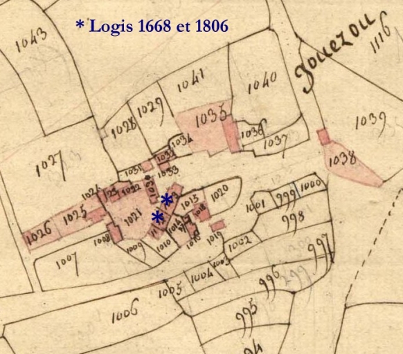 Ce grand hameau se distingue par un parcellaire serré et un bâti imbriqué, notamment pour le noyau ancien toujours en place (logis datés 1668 et 1806). Les accès et la structure ont peu changé entre le premier cadastre et aujourd'hui, mais entre 1845 et 1915, des logis ont été construits ou reconstruits autour du noyau initial. D'après une information orale, un lavoir ou une ancienne buanderie, est située, ruinée, au sud du hameau.