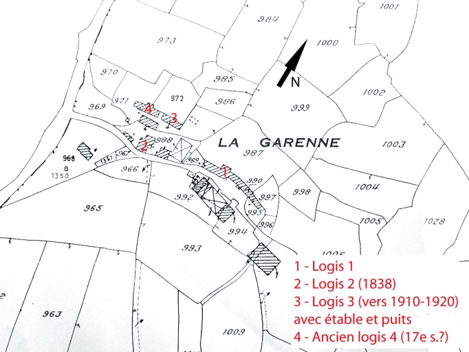 La structure du hameau n'a que peu évolué depuis 1812. Les trois ou quatre exploitations agricoles qui le composaient ont été profondémment remaniées. Le logis 4 (17e siècle ?) possédait un escalier extérieur aujourd'hui disparu qui permettait de desservir les parties hautes abaissées. Logis 1 à avancée (17e siècle) agrandi au 19e siècle. Avancée du logis 2 (en ruine) datée 1838. Logis 3 reconstruit vers 1910 - 1920.