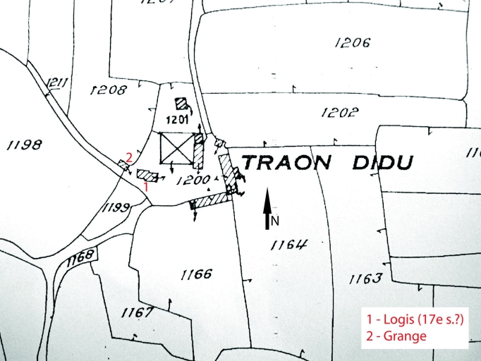 Logis datant probablement du 17e siècle. Grange postérieure à 1812.