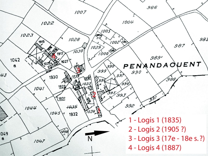 La structure du hameau, de type "village-rue", n'a que peu évolué depuis 1812. Logis 1 daté 1835. Logis 2 daté 1905 (?). Logis 3 du 17e ou du 18 siècle (?), profondemment remanié. Logis 4 daté 1887 dénaturé. Ancienne buanderie attestée mais disparue.