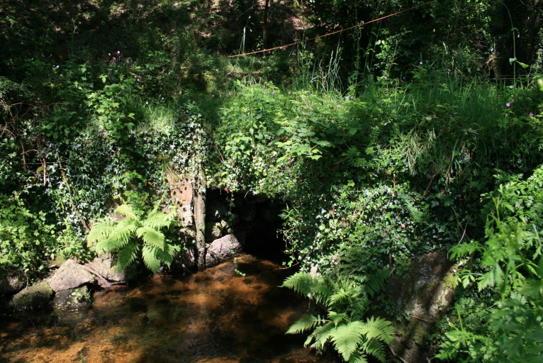 Pont en maçonnerie (deux piles à bec portant le tablier) figurant sur le cadastre de 1837, probablement érigé à la fin du 18e ou au début du du 19e siècle ; il assurait la liason entre le moulin à eau dit Moulin Neuf (commune de Saint-Thégonnec) et le bourg de Loc-Eguiner via le village de Guerbiguet.