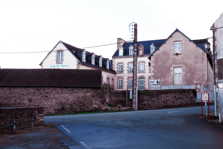 1. Mairie-école : ensemble composé de deux corps de bâtiments indépendants. Le bâtiment sur rue (ancienne mairie et logement d´instituteur) semble être inachevé ou amputé (manque de deux travées) ; travée centrale soulignée par des chaînes verticales en pierre de taille ; porte surmontée d´un linteau à plate-bande moulurée ; bandeau saillant en pierre de taille séparant les niveaux. 2. Ecole privée de filles (école Sainte-Thérèse) : ensemble concerté de plan en U avec bâtiment principal aspecté au sud (niche abritant une statue de sainte Thérèse) s´ouvrant sur une cour flanquée de deux ailes en retour d´équerre. Jardin clos de murs à l´ouest. 3. Ecole privée de garçons (école Saint-Michel) : grand bâtiment de plan rectangulaire s´ouvrant sur une cour au sud. Partie ouest (anciens logements et administration) à trois travées dépassant en largeur ; partie est (à usage de classes au rez-de-chaussée, à usage de dortoirs à l´étage) à sept travées. 4. Ecole publique de garçons : grand corps de bâtiment de plan rectangulaire à douze travées (à usage de classes au rez-de-chaussée, à usage de dortoirs à l´étage), jouxtant, à son extrémité nord-ouest, un pavillon indépendant (anciens logements des instituteurs), avec fausse lucarne aveugle portant l´inscription ECOLE DE GARCONS.