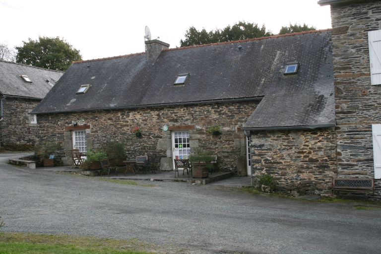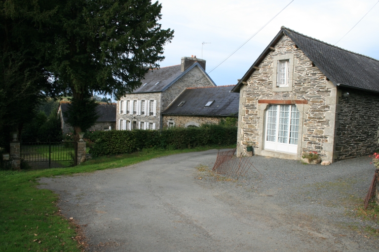 La maison de maître à étage à double orientation et travées (4 au nord, 5 au sud) donne sur le jardin au sud et sur l'ancienne cour de ferme au nord. Enduit disparu. Ancien logis de fermier et communs à combles à surcroît. Encadrement des baies en granite gris clair provenant du Huelgoat.